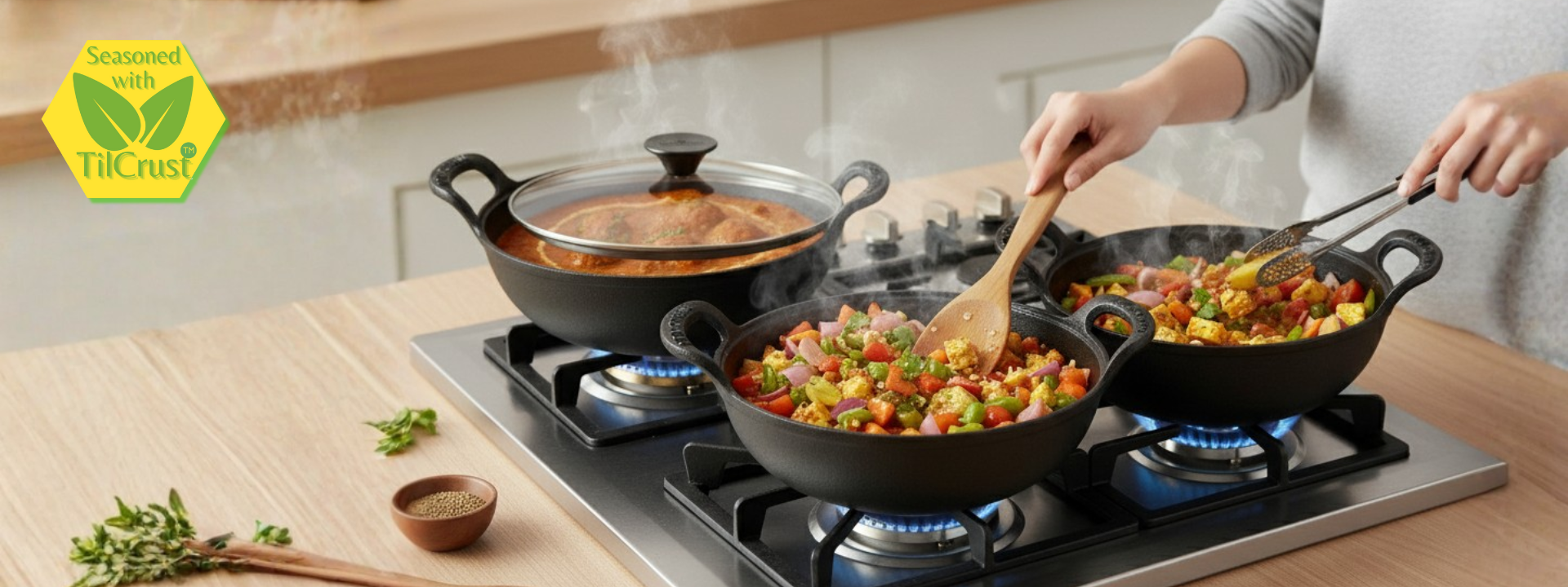 Cooking in Trilonium Cookware, naturally fortifies and enriches your food with the Goodness of IRON.
