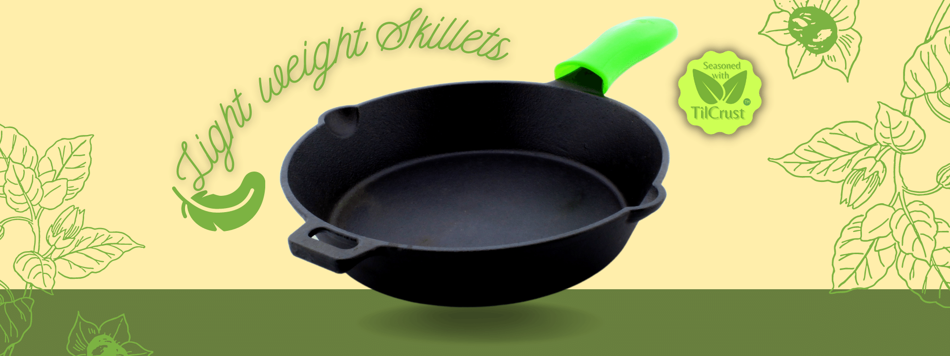 3. We use a proprietary mixture of 100% Natural Oils to season our cookware. We call it TilCrust™. We do not use any chemicals.