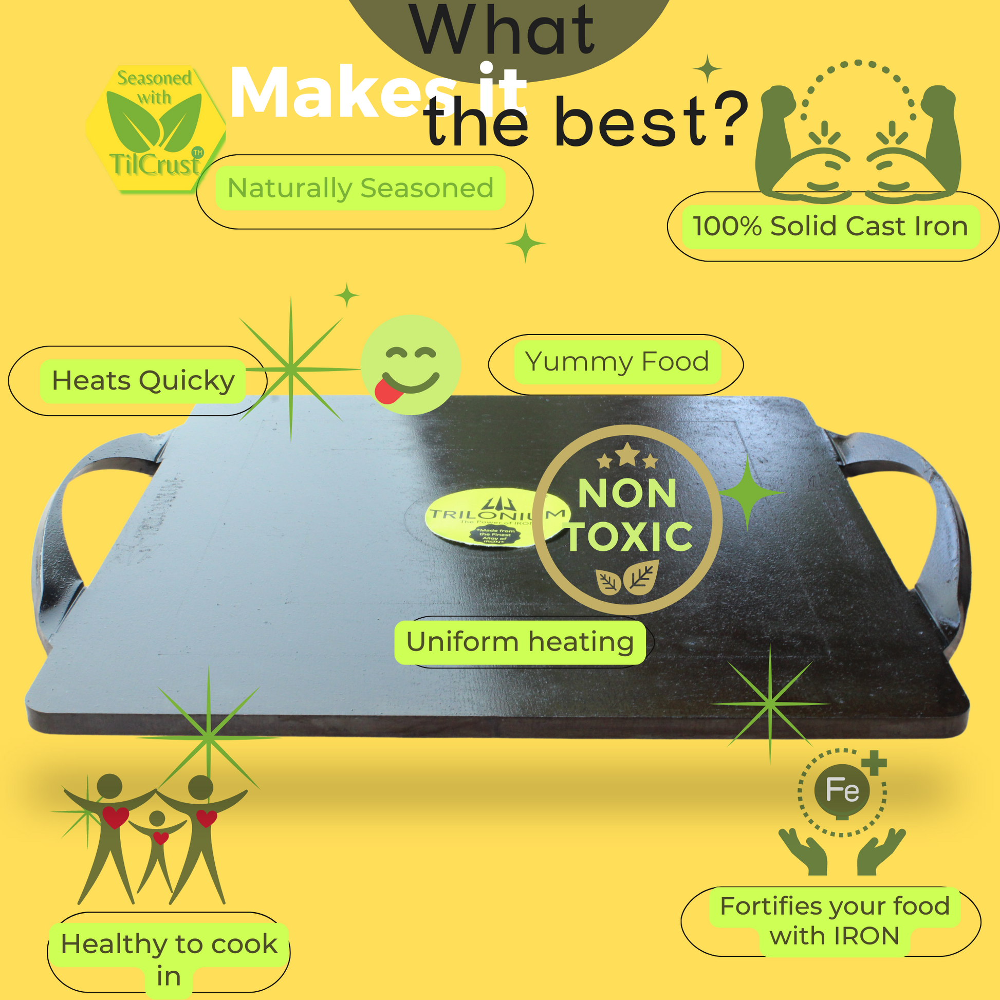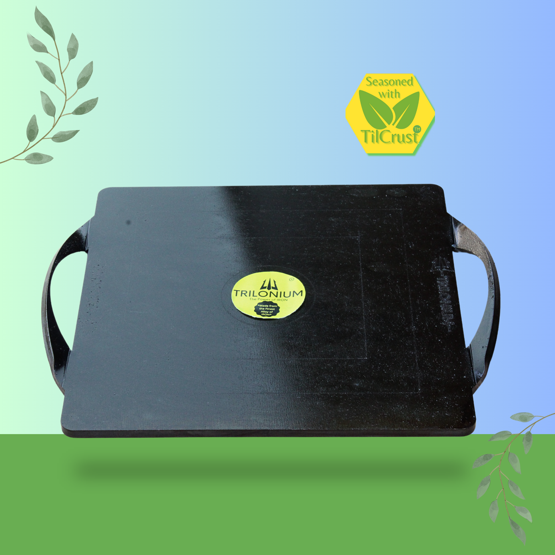 Trilonium Triple-Seasoned Iron Boulder Square Griddle pathri Tawa 30 x 30 cms , Ultra Smooth, Weights 5.8 Kgs