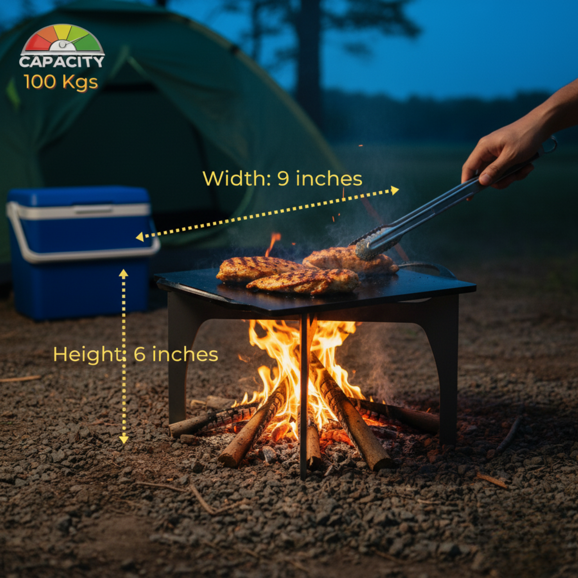 Cast Iron round Grill Pan with Foldable Handle | Pre-Seasoned | 24cm | 1.63 Kgs | Induction Compatible