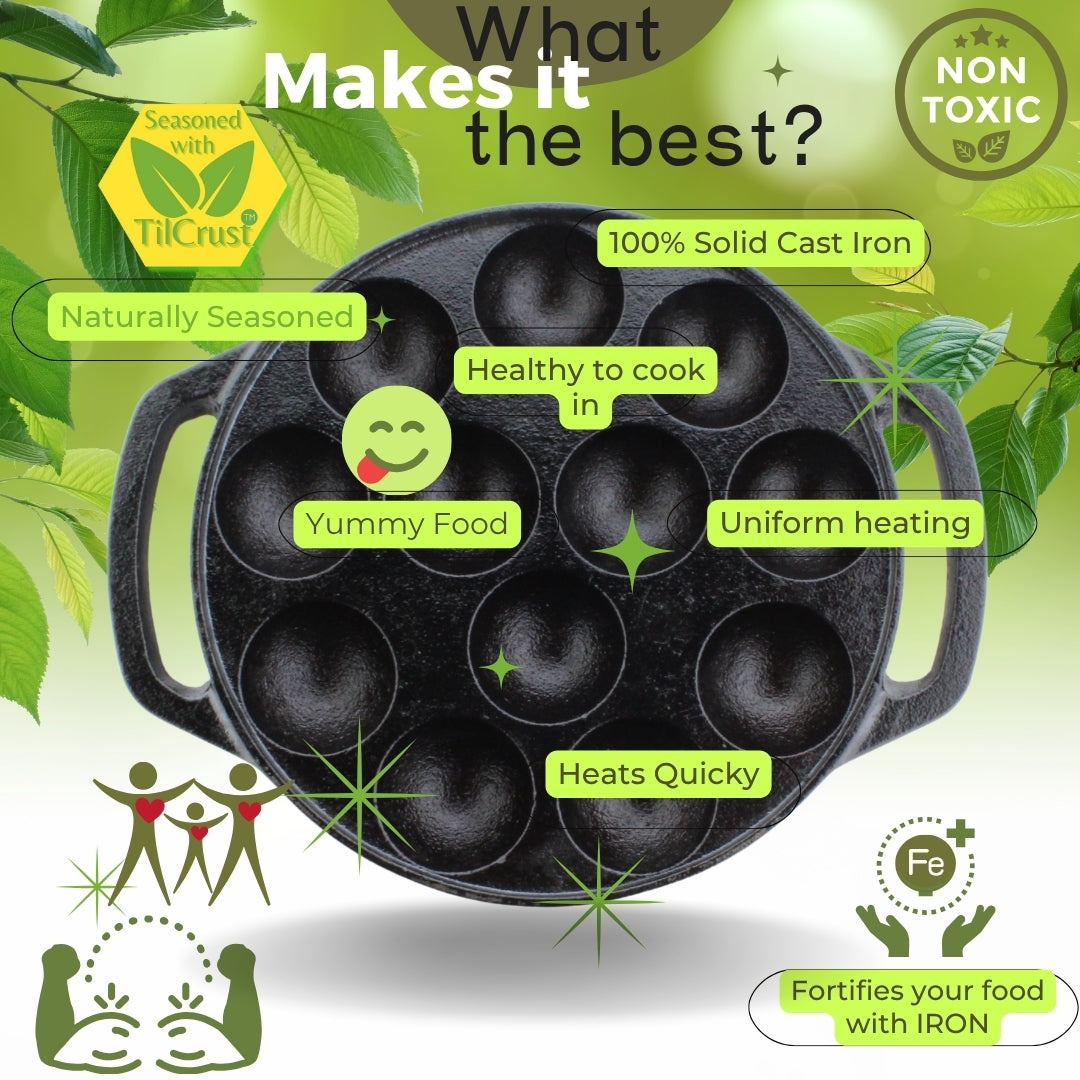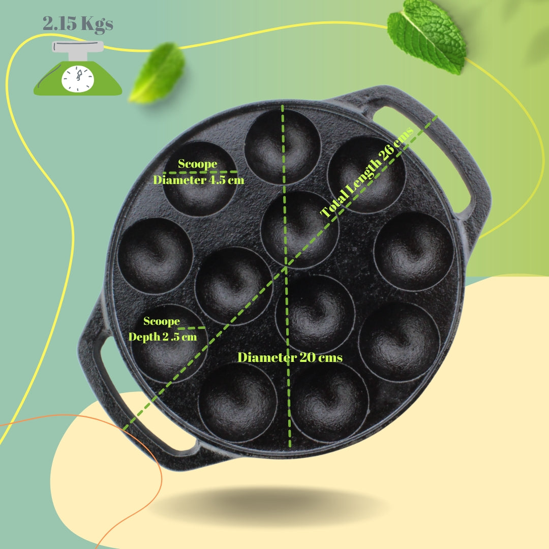 Trilonium Triple Seasoned Cast Iron 12 Pits Paniyaram Pan 8 inches